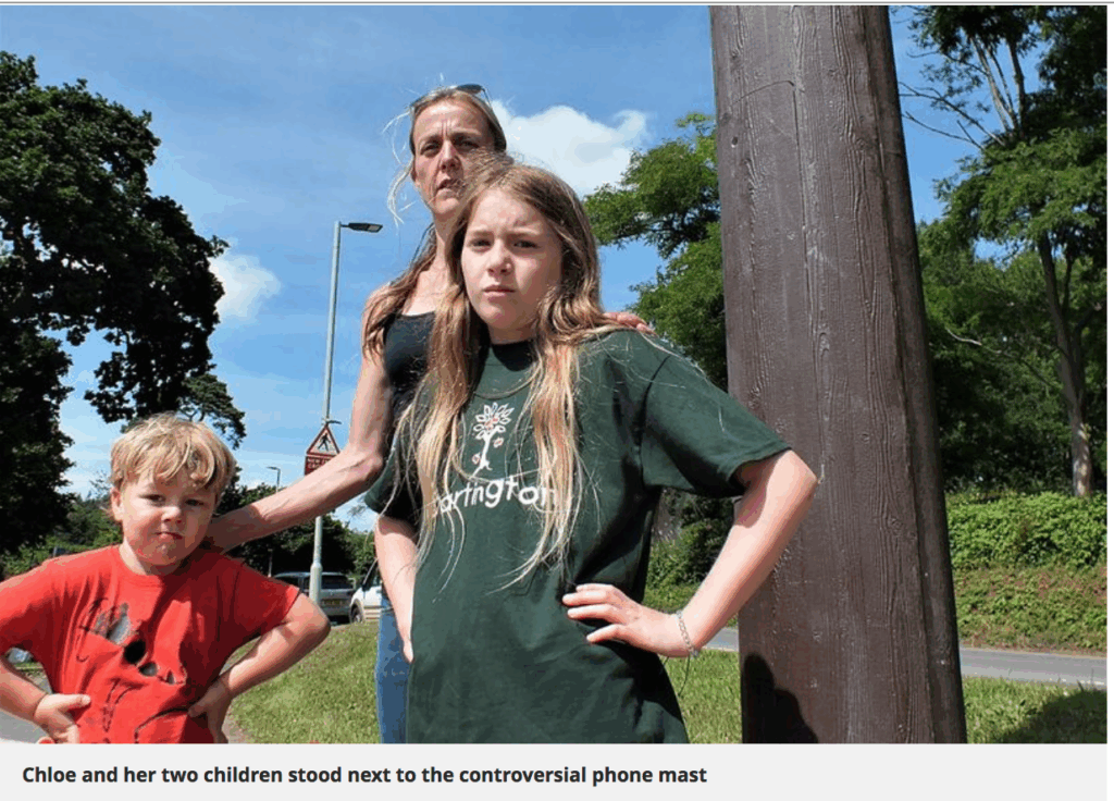 The 10m high structure is located just 50 metres away from Dartington Primary School, Totnes, which has worried parents over suggested radiation readings at the school which apparently show the highest reading of ‘excessive radiation.’