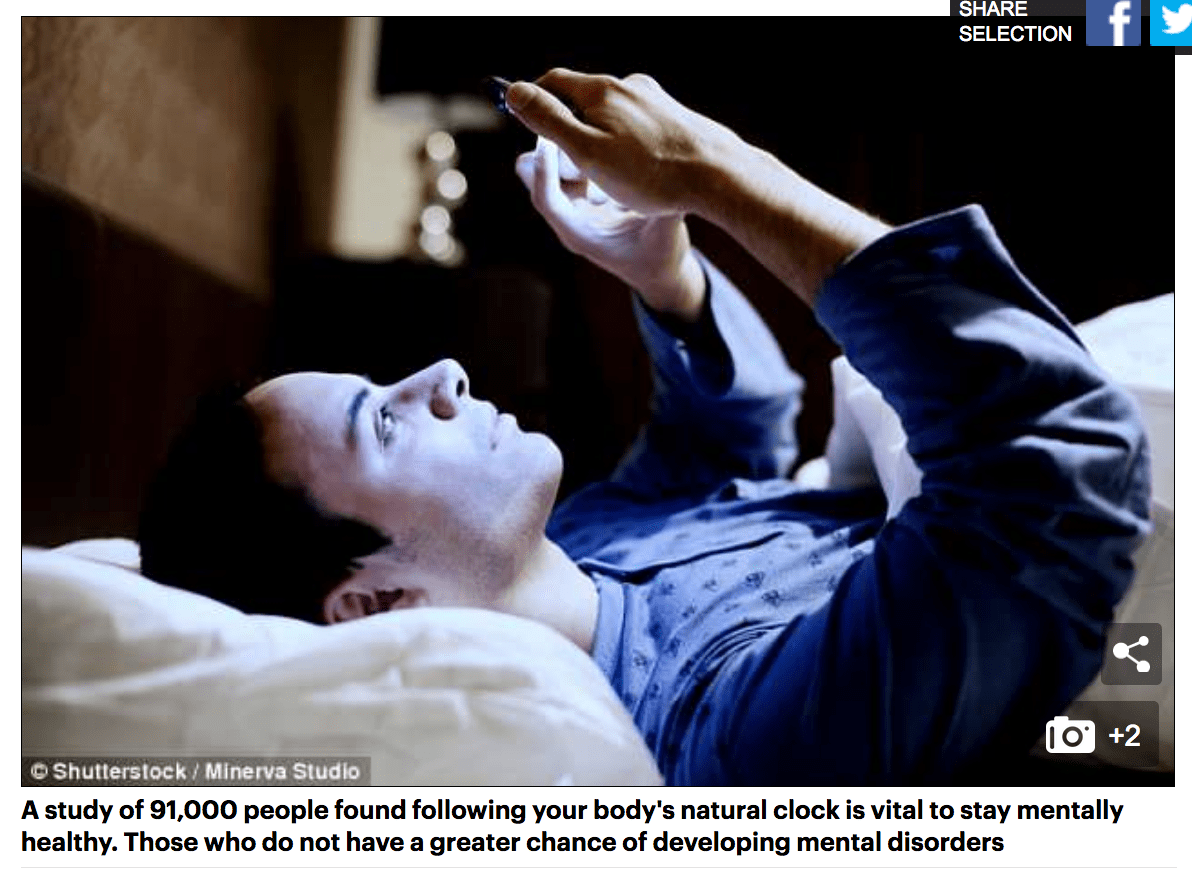 – people who fail to follow their natural body clock rhythm are more likely to have depression and mental health problems.