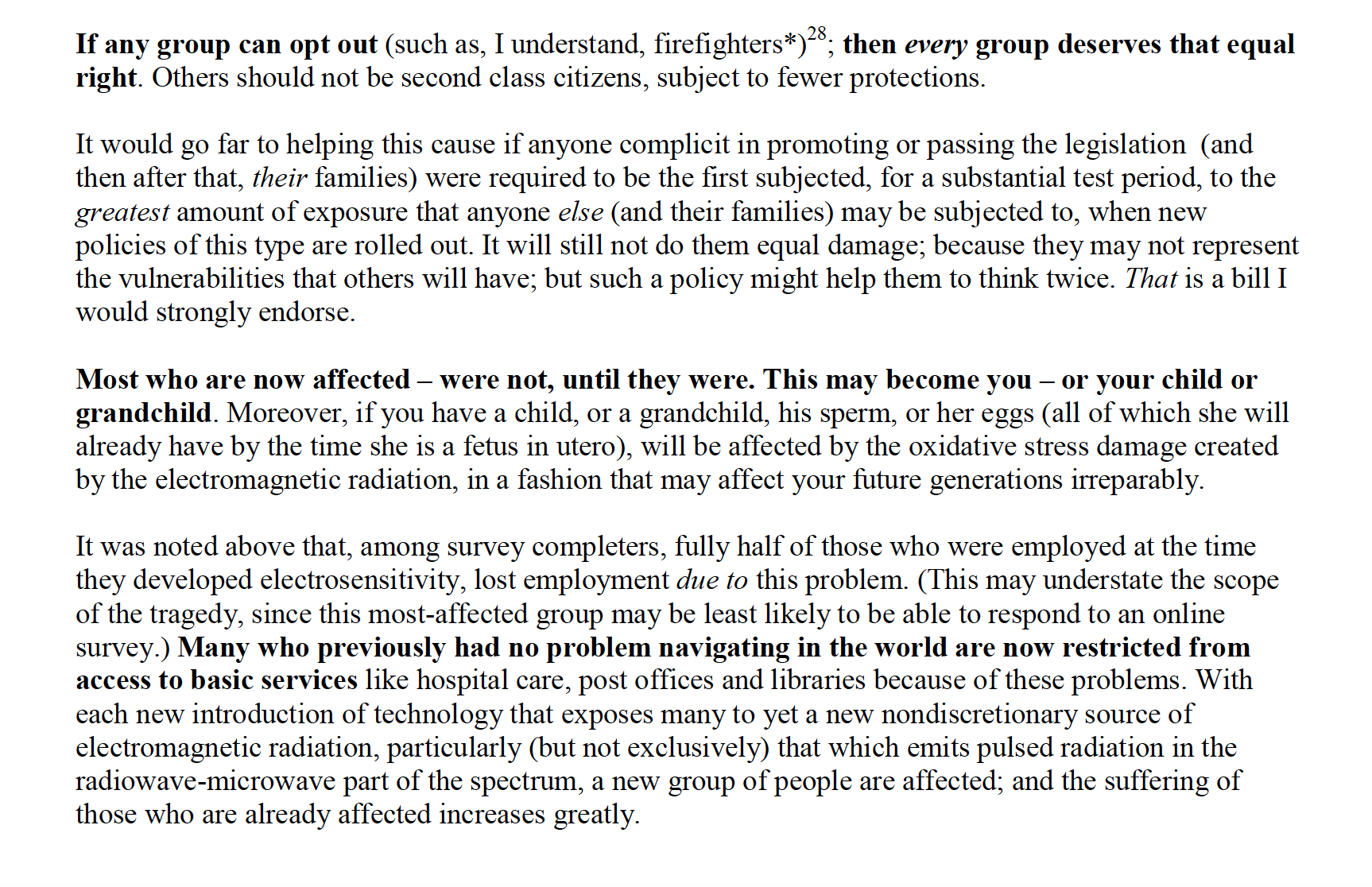 Firefighters in California were able to finally get an exemption granted to them from the California legislature so they are no longer required to have these toxic devices placed on their places of employment. I learned this from the following letter(3) which was written by a doctor in support of exemptions for anyone who does not want to be exposed to these radiation-emitting, noxious frequencies.
