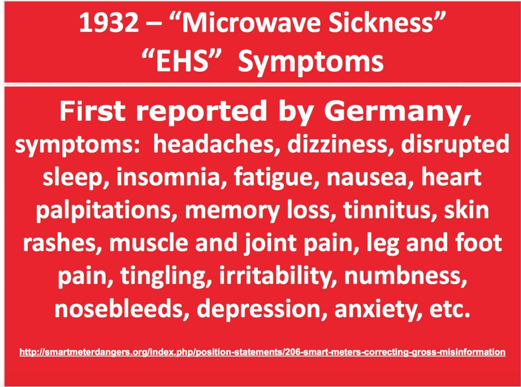 Source Article by Art KAB Do You Have Microwave/EMR Sickness? https://emfrefugee.blogspot.com/2007/07/do-you-have-microwaveemr-sickness.html</b>